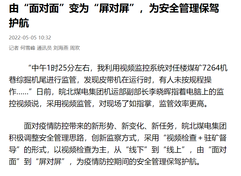 5月5日安徽日报客户端:由“面对面”变为“屏对屏” 为安全管理保驾护航