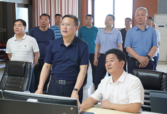 王小明一行先到调度指挥中心,通过实时监控视频了解矿井生产、监测监控、人员定位、智能化掘进等工作情况,听取了昌恒公司基本建设及安全管理的介绍。