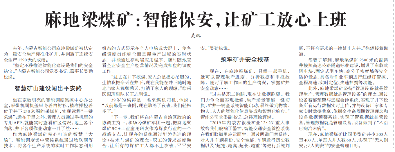 2月15日《中国煤炭报》3版:皖北煤电麻地梁煤矿智能保安,让矿工放心上班