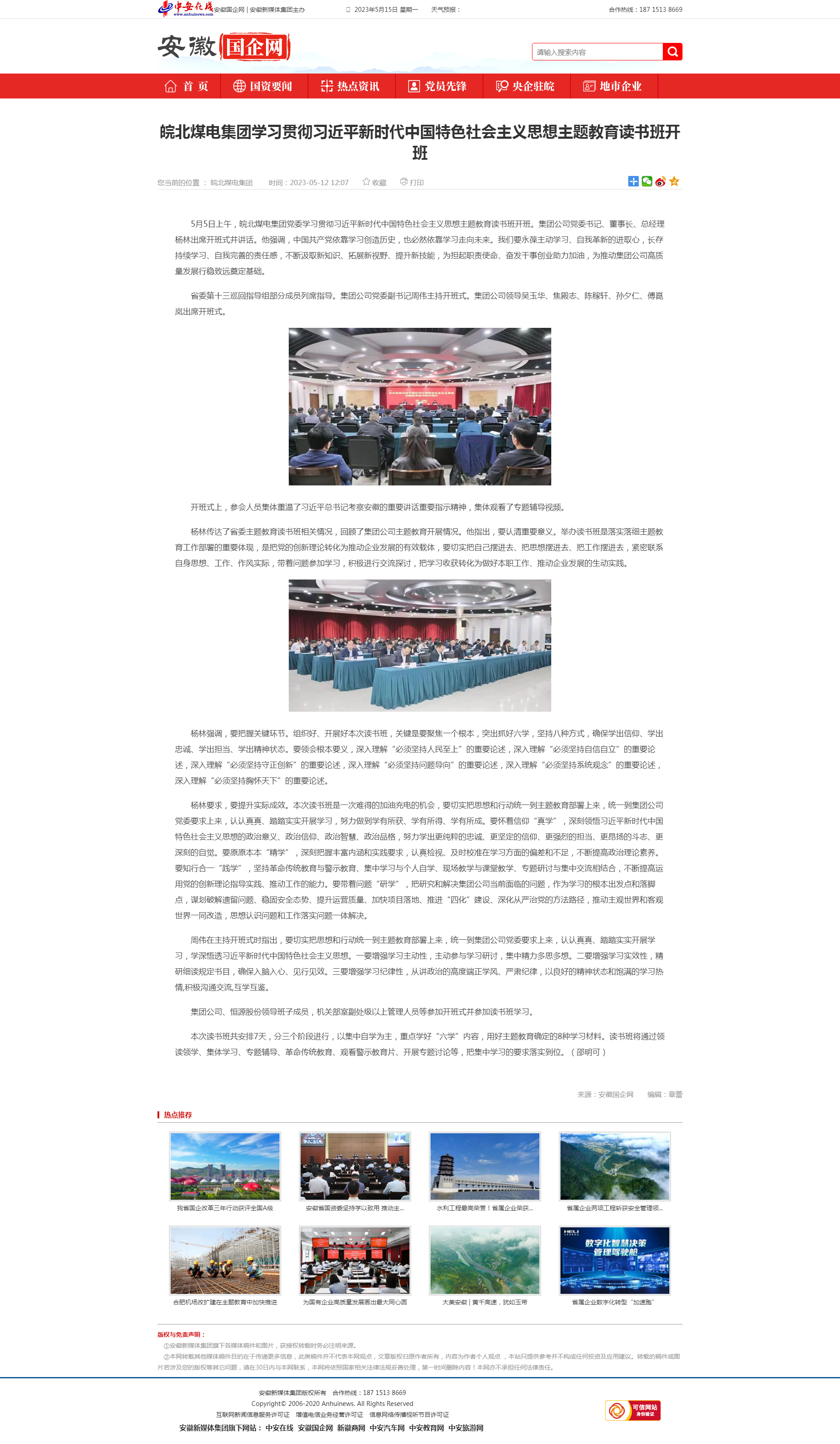 5月12日安徽国企网:皖北煤电集团学习贯彻习近平新时代中国特色社会主义思想主题教育读书班开班