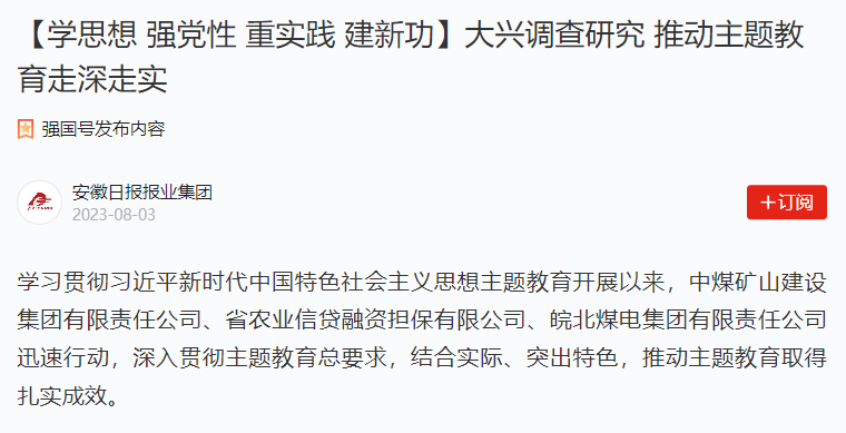 8月3日学习强国安徽频道:皖北煤电大兴调查研究推动主题教育走深走实