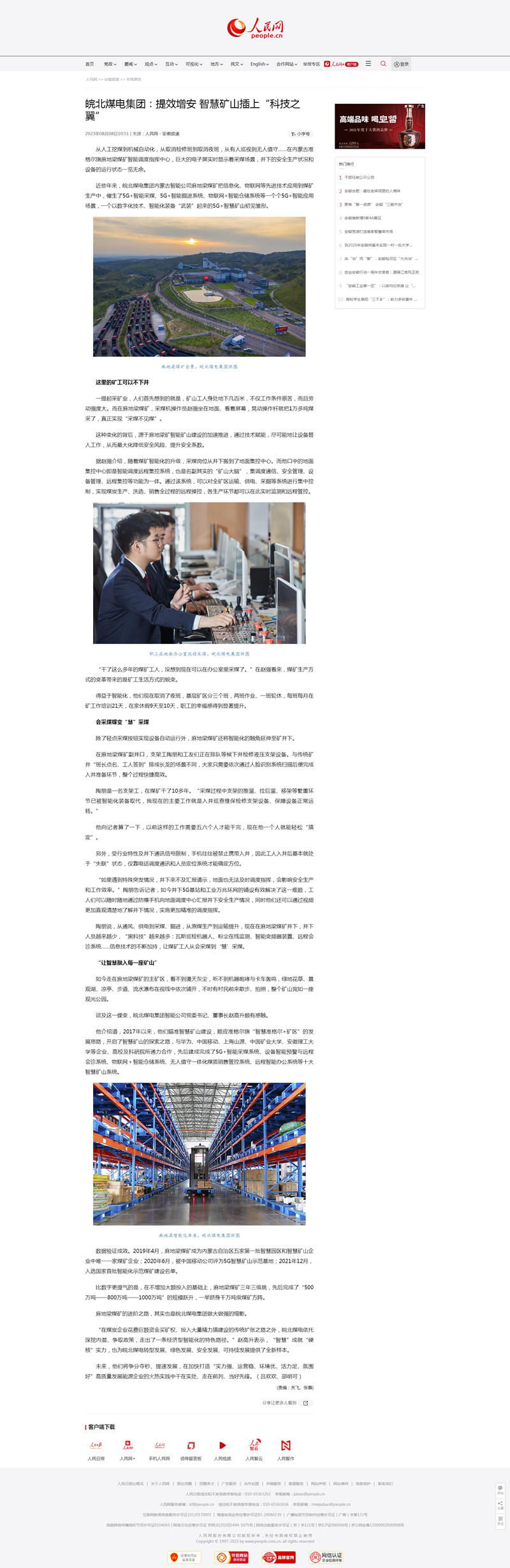8月8日人民网:皖北煤电集团提效增安 智慧矿山插上“科技之翼”
