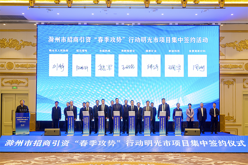 近日,滁州市招商引资“春季攻势”行动明光市项目集中开工、签约仪式在明光举行。作为参加本次签约的唯一省属国有企业,皖北煤电集团与明光市政府成功签约凹凸棒基新材料产业化项目。滁州市委书记吴劲,市委副书记、市长胡春华,市人大常委会主任胡孔胜,市政协主席孙军,市委副书记金力,明光市委书记张秀山,市委副书记、市政府市长张传宗等出席签约仪式。皖北煤电集团公司党委书记、董事长杨林应邀出席活动并见证签约。皖北煤电集团公司党委委员、副总经理陈稼轩参加活动。