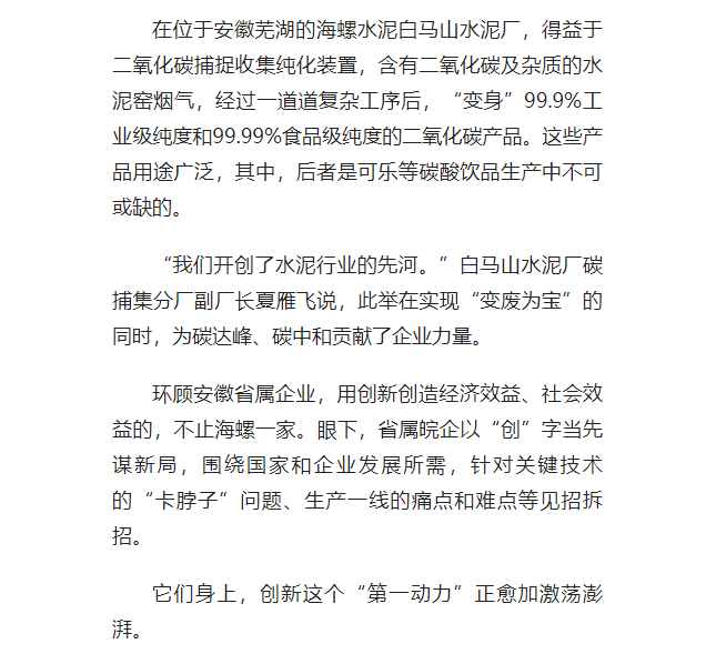 6月21日人民网安徽频道:安徽省属企业“创”字当先“新”自来