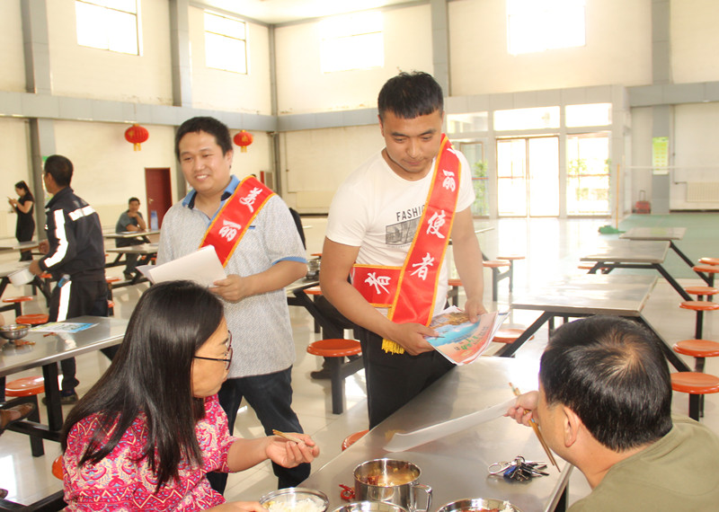 昌恒公司紧扣自然环境污染、节能减排等方面制作了宣传条幅,印制了环保宣传彩页,在矿区食堂门口设置了固定宣传点。青年义工化身“美丽使者”利用下班时间通过向来往职工群众发放环保彩页、讲解环保知识等方式,不断增强广大职工群众的环保意识,积极营造“绿色矿山我们共建 美好生活我们共享”的浓厚氛围,呼吁大家为加快建设绿色和谐矿山做出积极贡献。