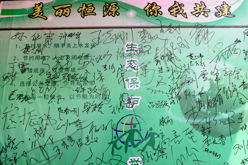 在“六•五”环境日、节能宣传周到来之际,恒源矿积极行动起来,采取多种形式开展宣传活动。工作人员在矿门口为上下班人员发放“六•五”环境日宣传单,解说宣传牌板中的内容,倡导广大职工要按照绿色发展理念,树立大局观、长远观、整体观,坚持保护优先,坚持节约资源和保护环境的基本国策,从自身做起,爱护环境,自觉的保护环境,从现在做起,从身边的每一件小事做起,杜绝环境污染,与自然融洽、和谐发展。随后,志愿者们深入一、二线班前会,向员工发放了印有“美丽恒源、我是行动者”的环保袋,并向广大员工发出了倡议。